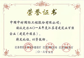 Annual Top 100 Construction Enterprises of Jiangsu Province in 2015